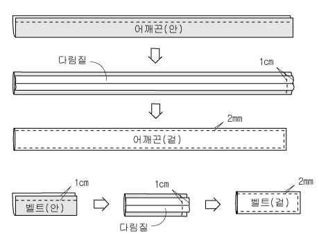 ÁÂ¿ì °¡ÀåÀÚ¸®¸¦ 1cm¾¿ µÎ ¹ø Á¢¾î ´Ù¸®°í °Ñ¿¡¼ 8mm ¾ÈÂÊÀ¸·Î ¹ÚÀ½ÁúÇØ ºÙÀÔ´Ï´Ù. |
